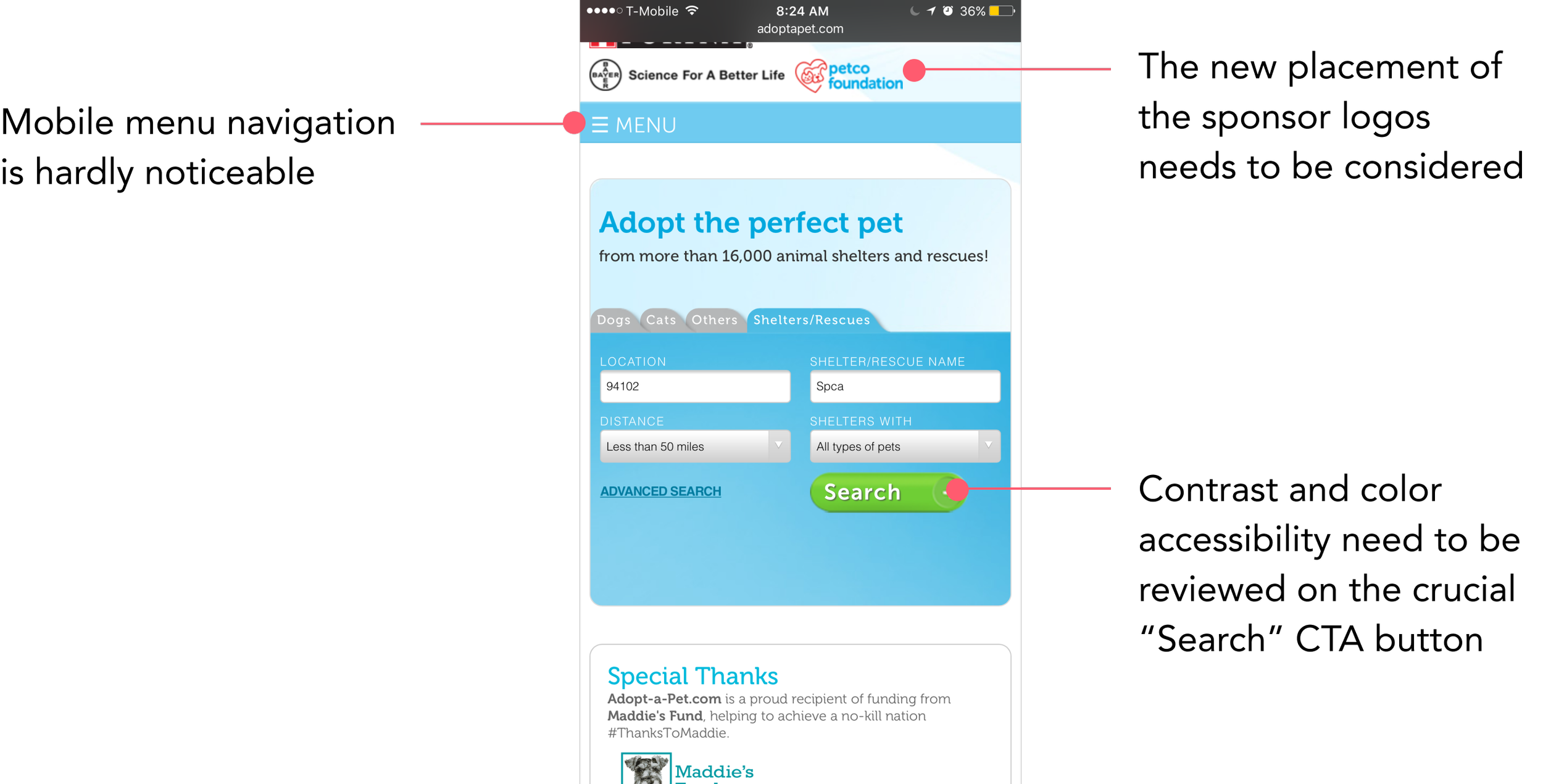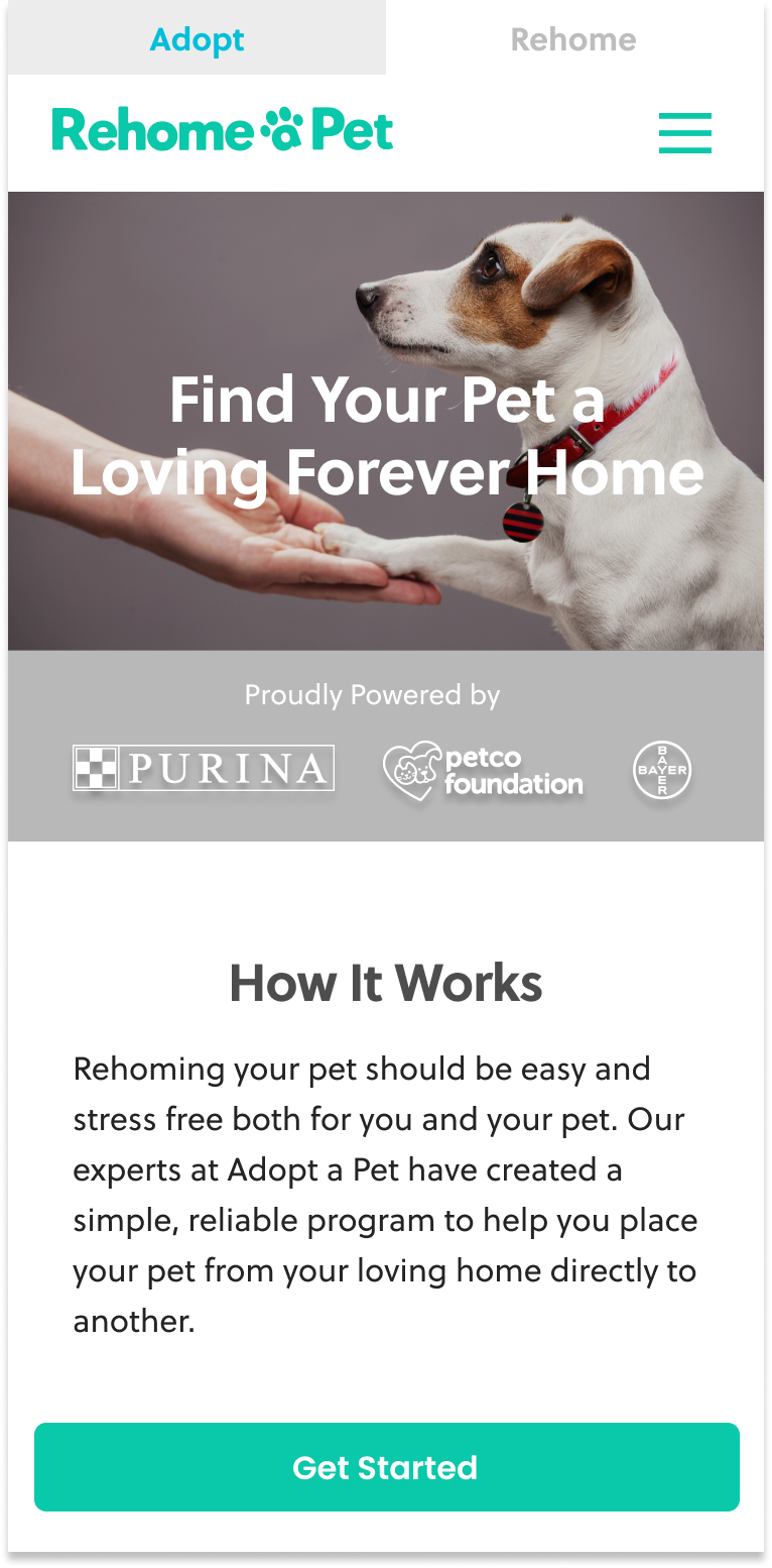 To understand the current state of the Adopt a Pet interface, I conducted a visual inventory of both mobile and desktop homepages.