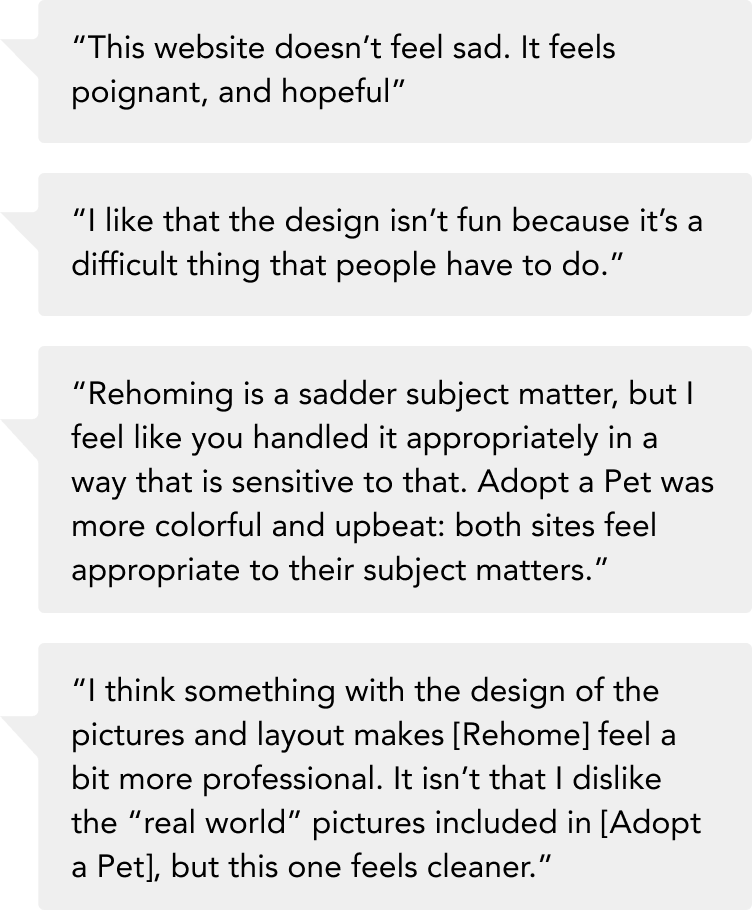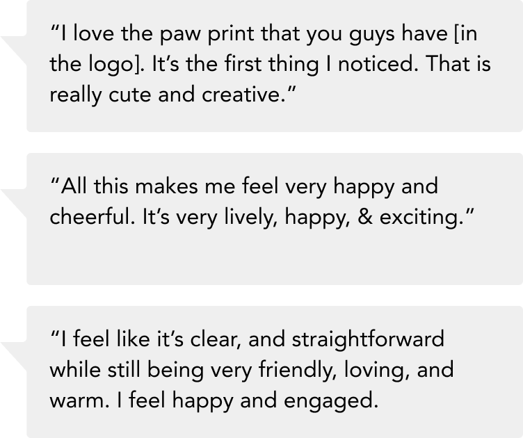 After conducting the Brand Awareness & Sentiment Study, participants were asked to share their immediate impressions of the refreshed Adopt a Pet branding.